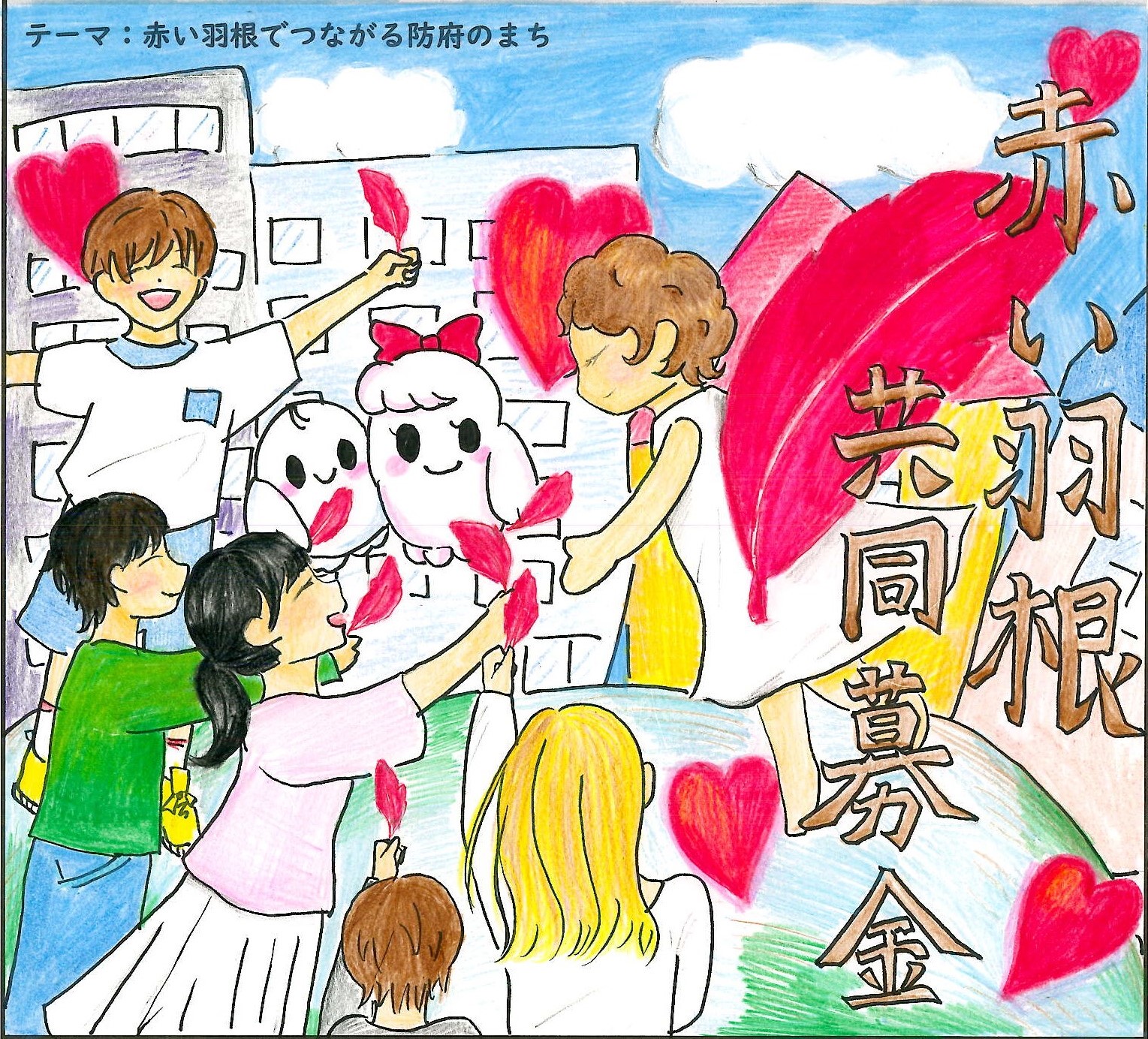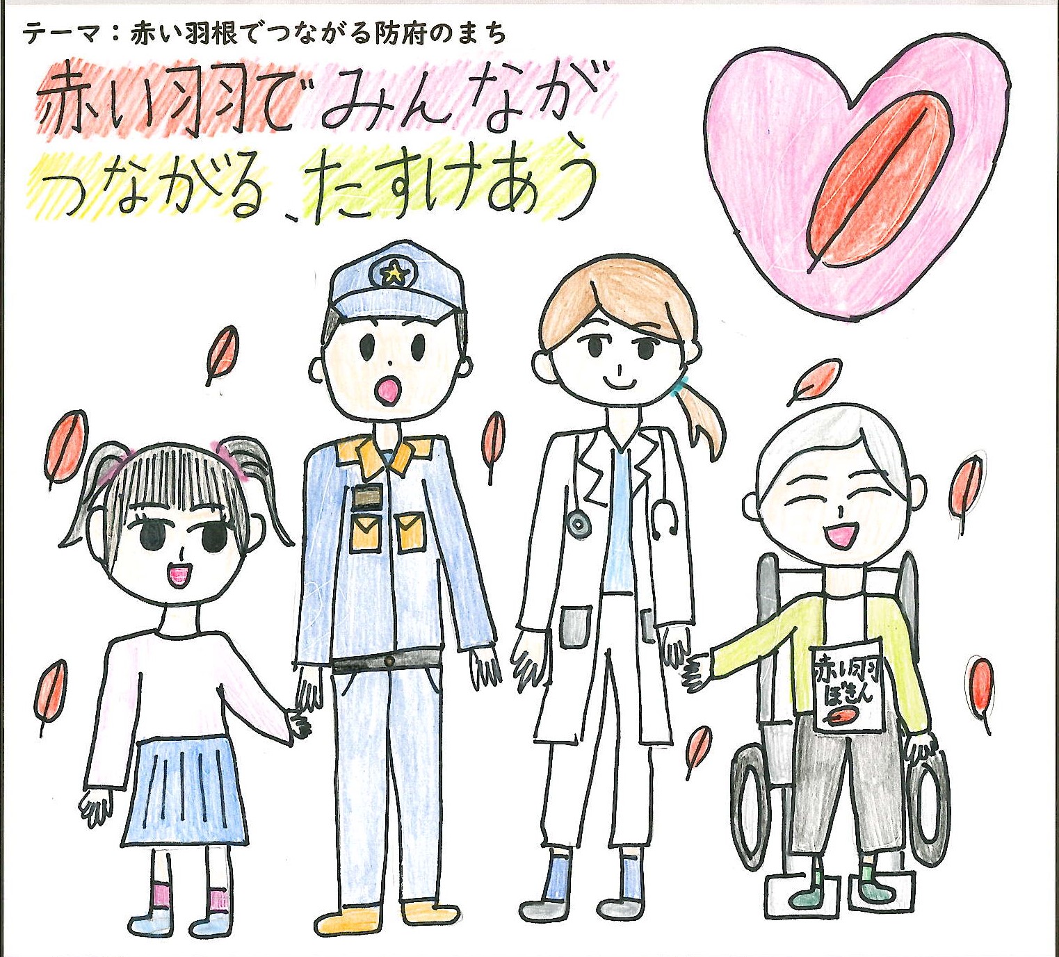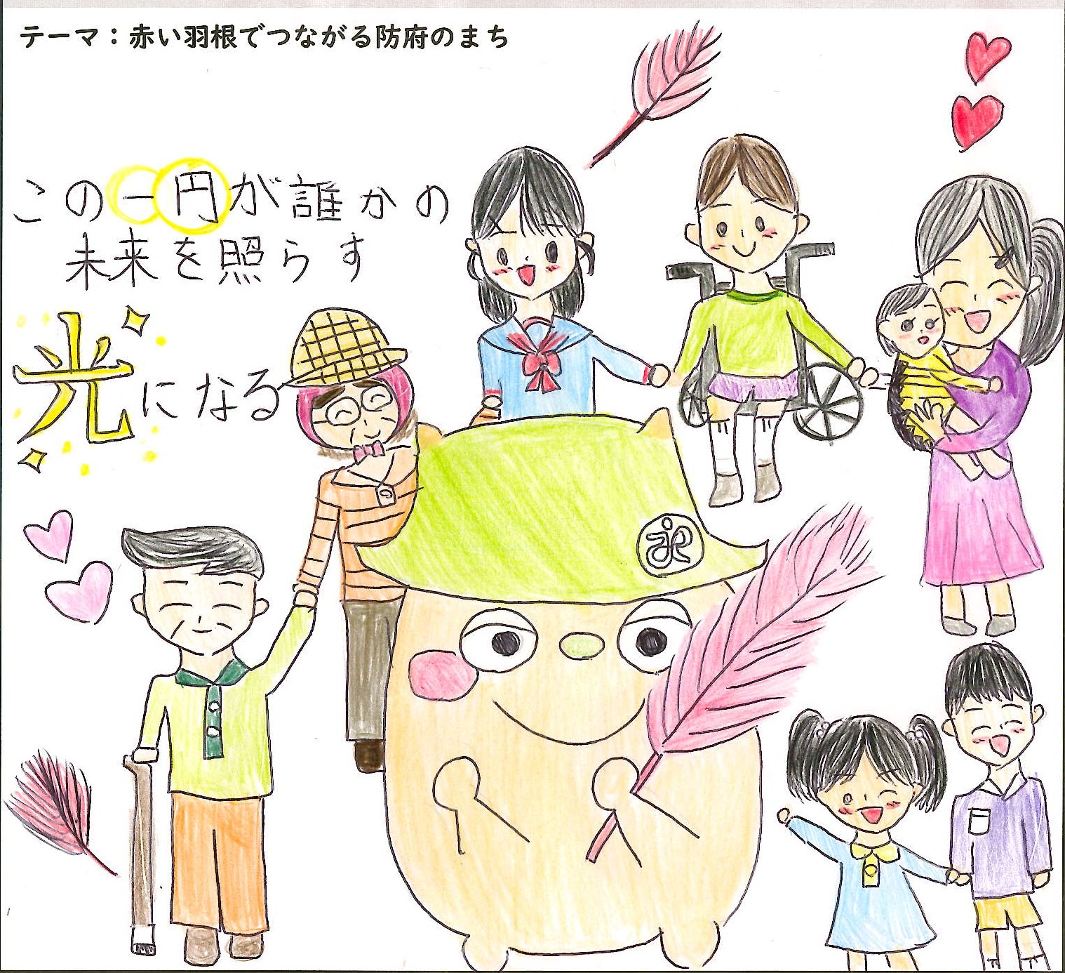 10月1日から赤い羽根共同募金運動がスタートするにあたり「赤い羽根でつながる防府のまち」をテーマにしたイラストコンテストを実施しました。今年は76作品の応募をいただき、その中から選ばれた優秀賞・入賞作品は、以下の場所の募金箱に掲示しています。ぜひ、これらの作品をご覧いただき、赤い羽根共同募金へのご協力をよろしくお願いいたします。