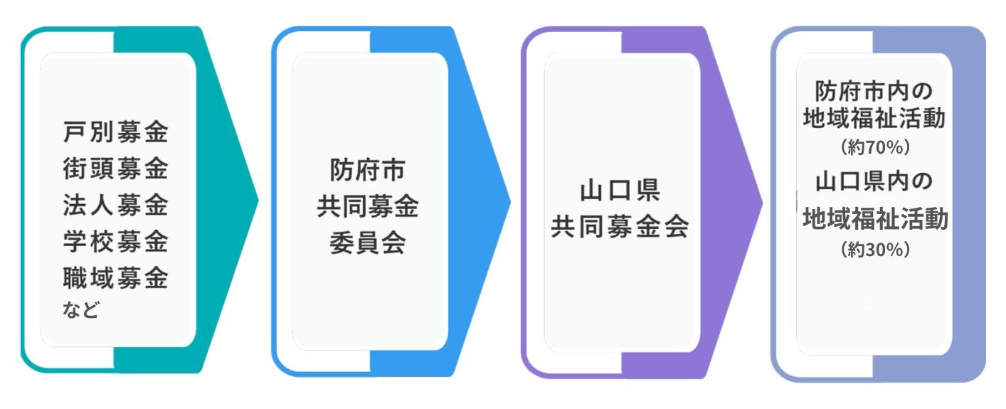 赤い羽根共同募金は、事前に様々な団体や施設から申込を受け、その内容について、必要性や緊急性などを考慮した配分計画を立てたうえで募金を募る「計画募金」です。そのため、目標額が決まっています。