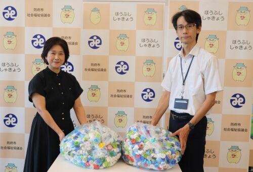 (公社)防府法人会女性部会様によりペットボトルキャップをいただきました