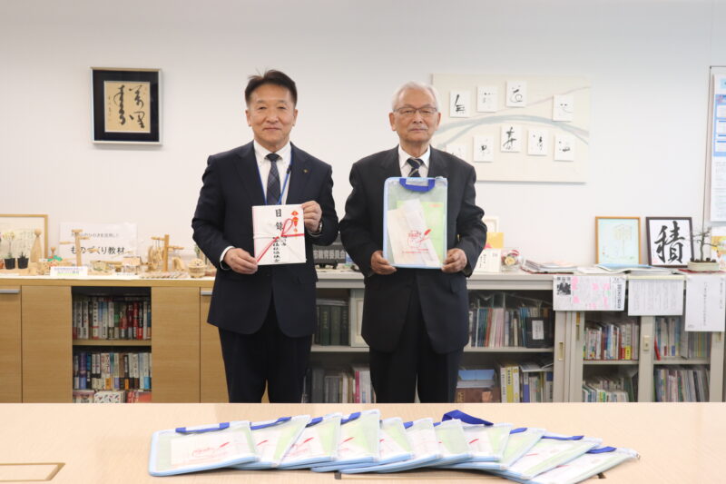 祝い品が、児童・家庭・学校の三者を結ぶ「きずな」や「かけはし」となり、入学準備の負担軽減にもつながることを願っております。